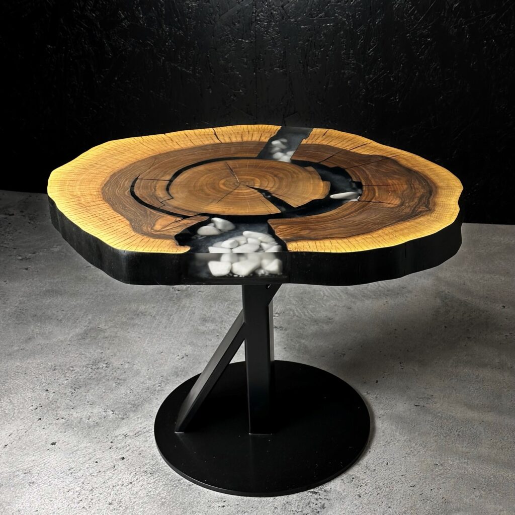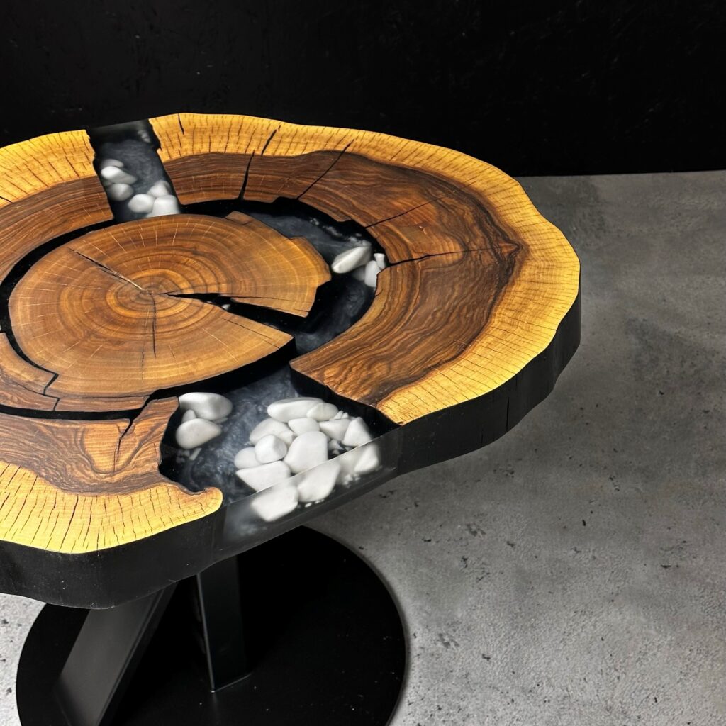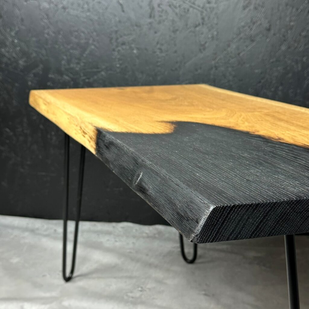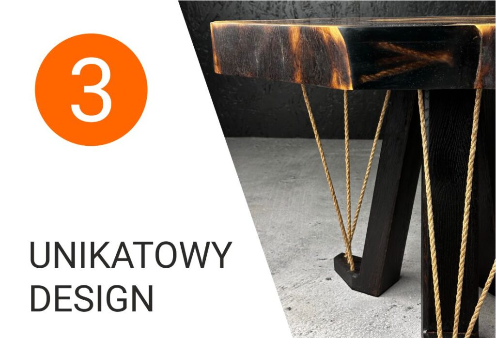 Naturalny brzeg przyciąga uwagę i niesamowicie wyróżnia się na tle innych stołów. Wprowadź nieco natury do swojego wnętrza.